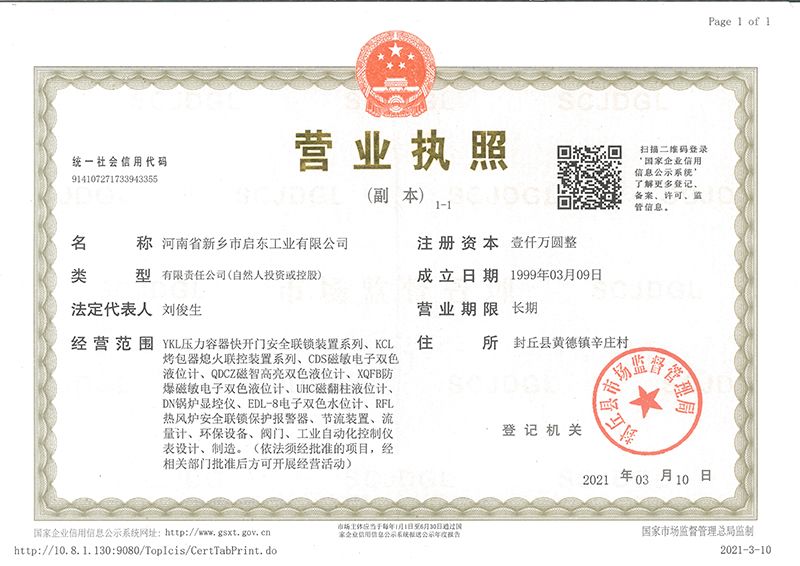 河南省新鄉市啟東工業有限公司始建于1987年,是專注研發、生產自動化儀器儀表(主要與壓力容器、鍋爐等容器配套使用)的廠家。主要產品有液位計(磁敏雙色型、磁翻柱型等)系列、烤包器熄火聯控裝置系列、壓力容器快開門安全聯鎖保護裝置系列、鍋爐報警器系列。二十多年來,公司產品暢銷國內并遠銷俄羅斯、蒙古與東南亞,深得廣大用戶的信賴和好評。我們多年來致力于自動化儀器儀表的研制生產,公司現具有完善的生產、試驗、檢測手段和設備。科技創新、誠信服務,是我們不變的經營理念,我們將以強有力的技術支持及售后竭誠為客戶提供良好的服務。  2012年我公司成功研發了KCL系列烤包器熄火聯控裝置,并于2013年2月2日榮獲中華人民共和國國家知識產權局辦法的《實用新型**證書》<**號:2021202257735>該產品廣泛應用于唐鋼等大型鋼鐵企業,為烤包器安全作業提供了有力的保障。  2002年我公司成功研發磁敏電子雙色液位計獨特的高亮度LED紅綠雙色顯示,獲得了專家的首肯和用戶的一致好評。在此基礎上我公司研發人員十年磨一劍,致力于XQFB-1防爆型磁敏雙色液位計的研發,于2013年12月27日由國家防爆電器產品質量監督檢驗中心檢驗合格并頒發防爆合格證書<編號:cnex19.0883>。該產品性能得到了充分的發揮,廣泛應用于含有Ⅱ類A·B級T1-T4組可燃氣體或蒸汽與空氣混合形成的爆炸性混合物的0區、1區危險場所。連接用戶DCS或PLC系統實現遠距離集中顯示和控制,從而實現節能、數字化管理。為用戶增加了一定的經濟效益和社會效益,。2014年公司成功申請了夢潤儀表的logo,新的品牌新的形象,夢潤儀表是啟東的LOGO, 歡迎新老用戶前來洽談合作?! ∥覀円蝗缂韧刈⒅乜蒲械耐度?,憑借產品的不斷更新、加大科技含量,進一步拓展市場。我們相信品質成就未來,以過硬質量、優惠價格、完善的售后服務熱忱歡迎廣大客戶來我司視察指導、洽談業務;精誠合作,共創輝煌!